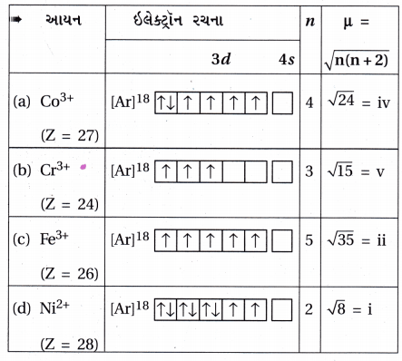 Cr3+ તે 3d3 છે, જેથી n = 3, માટે μ = 3.87 BM
